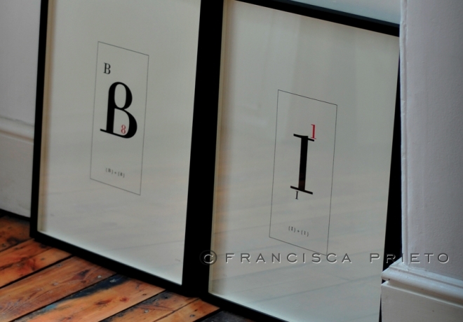 In a series of 10 limited edition prints Francisca explores the uncanny resemblance of many of the characters of the Latin alphabet to Hindu-Arabic numerals. Using these everyday symbols, Francisca creates new and distinctive characters, combining a letter and number from each unrelated script. These avant-garde representations are both strange and familiar, a joining of elegant lines and evocative angles that form new connotations; intriguingly different, each reinterpretation possesses its own personality.