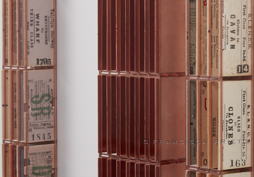The Reflection triptych celebrates Graneros, an area of agricultural land that lies at the feet of Cordillera de la Costa and overlooking Cordillera de Los Andes in Chile. To the artist, Graneros is a place to reflect, a landscape of contemplation and inspiration. As vistas shift when travelling through a landscape, so does each view through this triptych, as space grows and shrinks within each frame. Bright copper metal, rippling with apertures and shadows, conjures the intense Chilean light of the mountains; the deep pink, coppery sunrise and sunset that bathe the dramatic lines of the Andes. Green lettering evokes the lush green foliage of surrounding forests and agriculture, and the rose the rich fertile earth. The rhythm of nature plays across the triptych’s framed patterns, shifting to create open spaces for discovery and rebirth, and closed planes for pondering and reflection. Together the three frames are calming, exuding a warmth that mirrors the transformative effect contemplating our earth’s rich and natural landscape can bring.