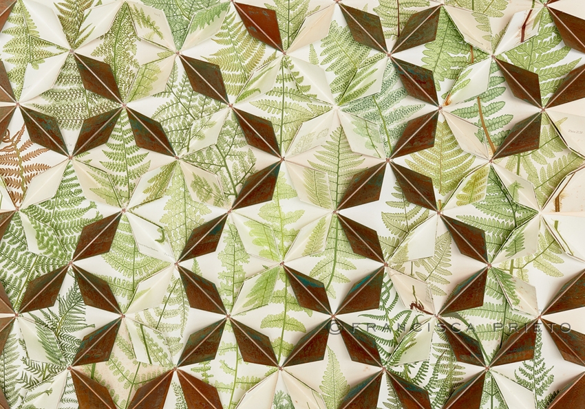 Francisca Prieto’s latest work is a true celebration of the concept of resilience through nature. The book that forms the material for this work not only explores one of nature’s oldest and hardiest plants, the fern, but is printed using a rare technique of reverence, naturselbsdruck or nature printing.