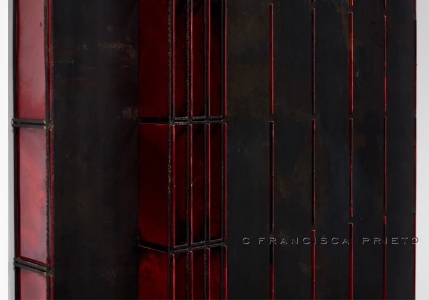 Parthenocissus tricuspidata – or Boston Ivy – fleetingly turns scarlet tinged with black and gold just once a year. It is these colours that ignite Francisca Prieto’s memory of walking past Whitehall at a moment fraught with political uncertainty through Brexit. The magical brilliance of nature’s colours, of leaves once green that seem aflame, epitomise this moment, as they set the walls of government alight. Deep and dramatic reds lick the work’s matt black metal frame, mottling to coppery gold in burning patterns, of which no two are the same. The effect is mesmerising, fitting for the strength of a moment that never leaves us.