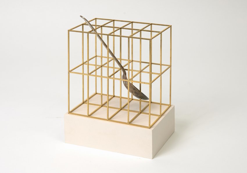 Prieto carefully creates a purposeful frame which imprisons the object in mid air, hovering on the brink of action. It mirrors the frustration felt by women as their own actions have been halted by imposed roles, society, and the patriarchy. Yet women have always been determined, as these objects are, to break free. A small part always succeeds in escaping the cage. For despite their obstructions, women will continue to push through the barriers, albeit an inch at a time.