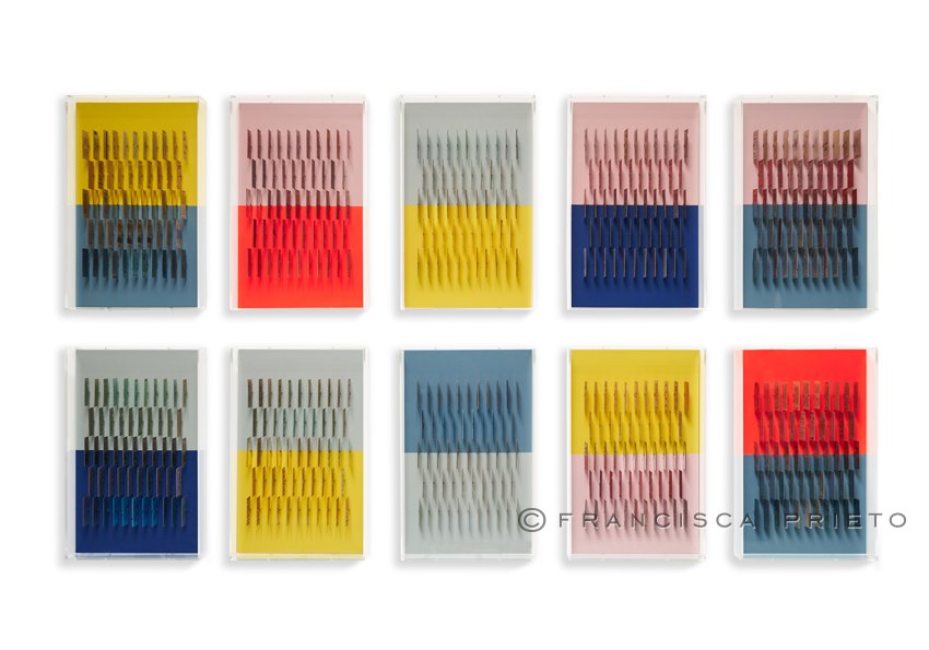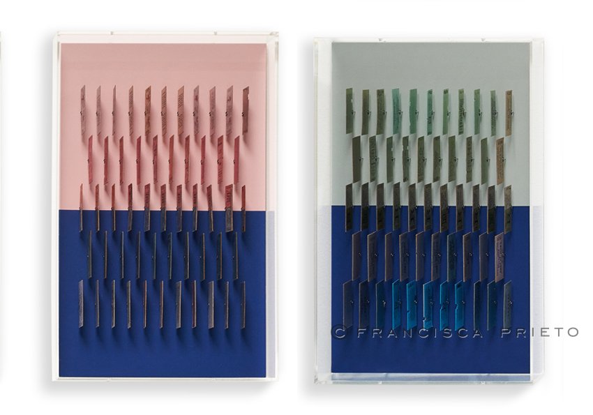 Dichotomy I-XI visualises the contrasting cultural influences that have shaped Francisca’s life. Two divergent colour schemes symbolise the distinct experiences of living in South America and Europe for the same amount of time; Francisca was born and grew up in Chile and has lived in the UK since studying in London. The unexpected combinations of colours represent the collision of two cultural identities that coexist, clashing yet coming together to work as one.