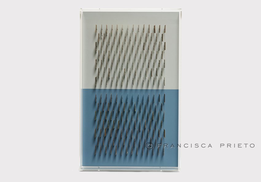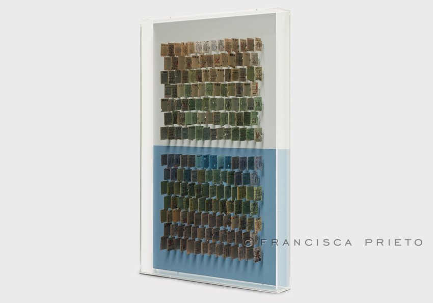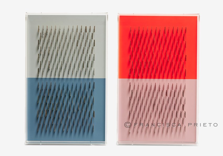 The tickets share a similar colour palette throughout each work, unified as one person, though their tones shift across the contrasting halves of the background, representing how identity subtly changes across different places. The visual and physical separation between the two halves is stark, with the vibrancy of bright and bold colour juxtaposing the cooler quieter tones. Despite this division, the tickets – through their colour, format and alignment – bridge the gap; they embody the constant of an individual in two coexistent worlds.