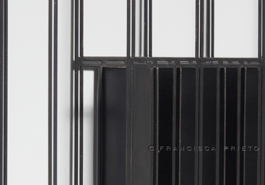We are consumed by the many different viewpoints in life: different outlooks, different opinions that stem from different beliefs or experiences. Embodied in black and white, the two colours most different from one another, Francisca takes our differing points of view and distils them. Head on it is a clear cut grid, crisp lines and clear space; from the side a black square emerges, space definitively filled. What you see is dependent on the angle from which you approach, as ideas, viewpoints and opinions shift across our spaces in life. Everything can change depending on where you stand.